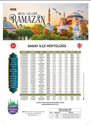 2026 YILI DADAY RAMAZAN İMSAKİYESİ