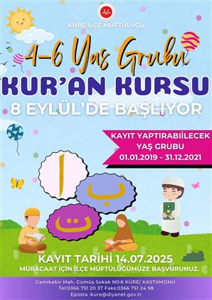 2025-2026 YILI 4-6 YAŞ GRUBU KUR'AN KURSU KAYITLARI BAŞLAMIŞTIR.