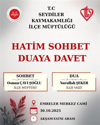 HATİM SOHBET DUAYA DAVET PROGRAMI DUYURUSU